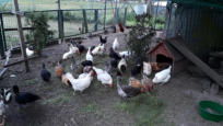 und so einiges an Tieren, wie zum Beispiel Schafe, Hühner, Wachteln, Laufenten,