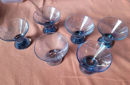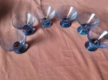 6 Likörgläser, leichtes blau ohne Schliff