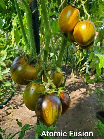 Pflege: Wie viele andere Tomatensorten benötigt auch die Atomic Fusion regelmäßige Bewässerung und Düngung. Es ist ratsam, die Pflanzen zu stützen, um das Brechen der Stängel durch das Gewicht der Früchte zu verhindern.