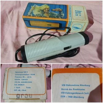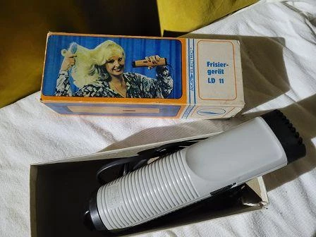 Das Frisiergerät LD 11 ist ein Haartrockner, der in der ehemaligen DDR (Deutsche Demokratische Republik) hergestellt wurde. Diese Geräte waren in den 1970er und 1980er Jahren populär und sind heute oft bei Sammlern von Retro- oder Ostalgie-Artikeln gefragt.