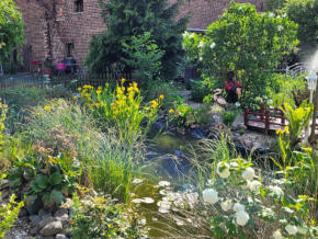 Teich durch eine Brücke und einen Überlauf erweitert. Wir freuen wir uns über die Besucher unse-