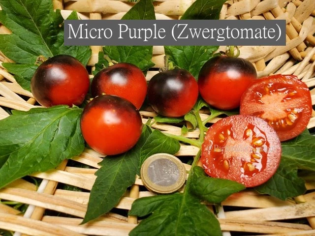 Die Tomate Micro Purple ist eine kleine, attraktive Tomatensorte, die durch ihre auffällige lila bis dunkelviolette Farbe besticht. Sie ist bekannt für ihre kompakte Größe, was sie ideal für den Anbau in Töpfen oder kleinen Gärten macht. Der Geschmack ist meist süßlich und aromatisch, was sie zu einer leckeren Zutat für Salate, Snacks oder Dekorationen macht. Die Micro Purple ist zudem eine interessante Sorte für alle, die gerne mit Farben und Sorten experimentieren möchten