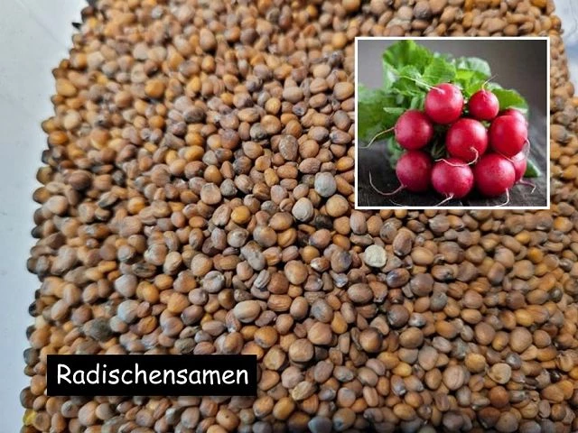 Radischensamen sind klein, rund und haben eine braune bis schwarze Farbe. Sie sind relativ leicht zu handhaben und können einfach ausgesät werden.