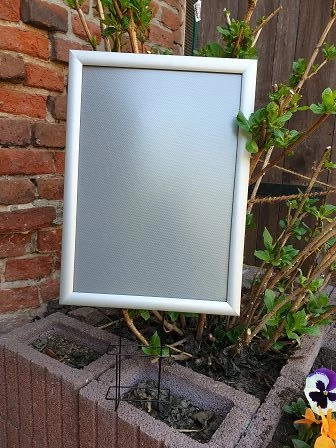 Das Aussenmaß des Rahmens 34 x 47 Kann vorne/ unten verschraubt werden . Gut als Werbezwecke für den Aussenbereich verwendet werden Neue für 5€ Gebrauchte 3€ Mehrere vorhanden