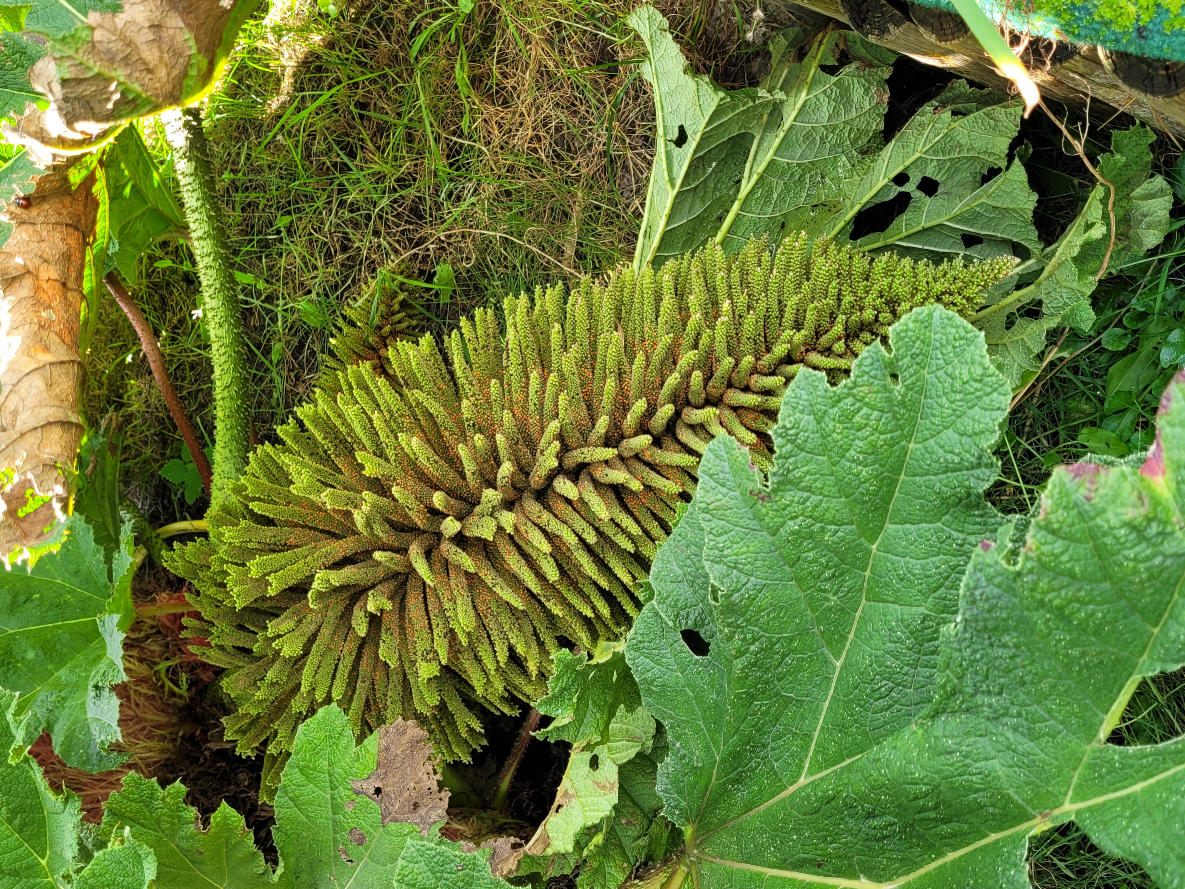 Die Blätter der Gunnera sind rund bis nierenförmig und verfügen über einen gelappten, unregelmäßig gezähnten Rand. Der Durchmesser eines einzigen Blattes kann bis zu 200 Zentimeter betragen.