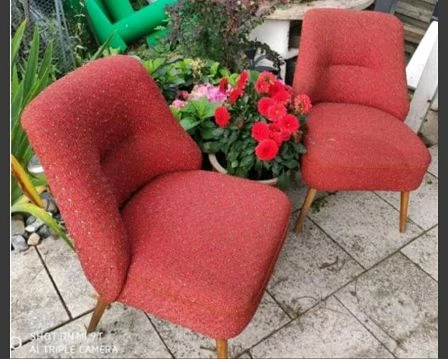 Sessel sind aus den 70er Jahren, sehr stabiel und gut gepolstert. Die eine oder andere kleine Kante ist der Stoff abgescheuert.