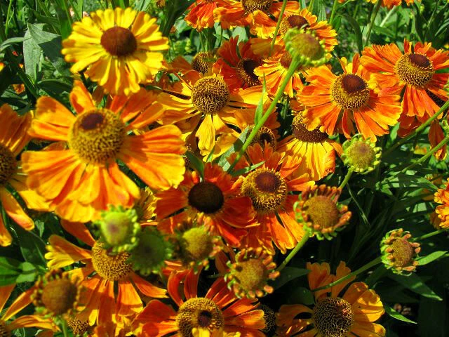 Mit ihren leuchtenden, warmen Blütenfarben sorgt die Sonnenbraut (Helenium) für einen sommerlichen Höhepunkt im Staudengarten und ist, was die Leuchtkraft ihrer Blüten angeht, kaum zu schlagen. Nicht verwunderlich also, dass der "Bund deutscher Staudengärtner" sie bereits im Jahr 2008 zur Staude des Jahres kürte. Ihren botanischen Namen verdankt diese Gattung Carl von Linné, den die Blütenform an eine Sonne erinnerte und der den Namen deshalb an den griechischen Sonnengott Helios anlehnte. So entstand der Name Helenium.