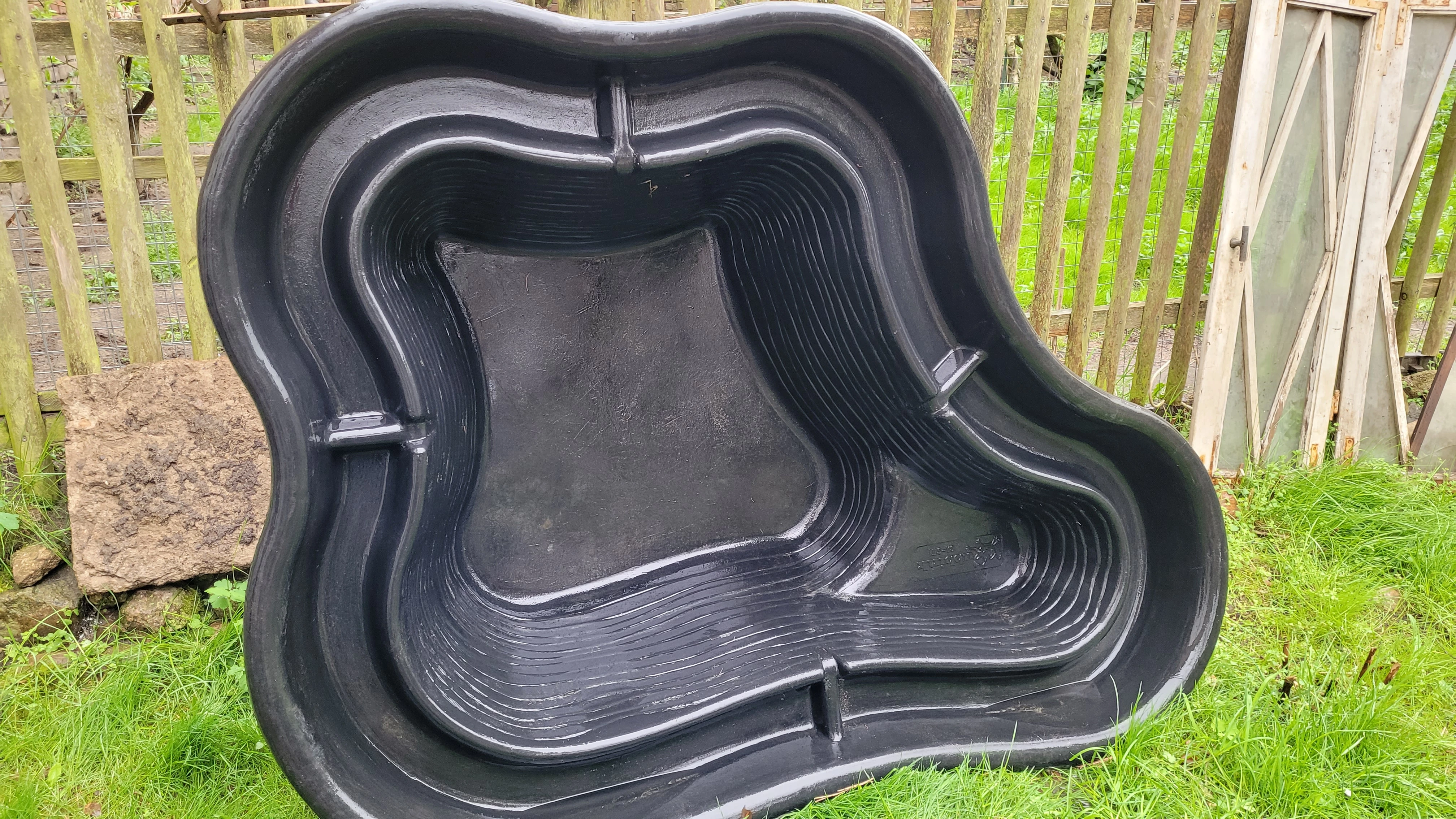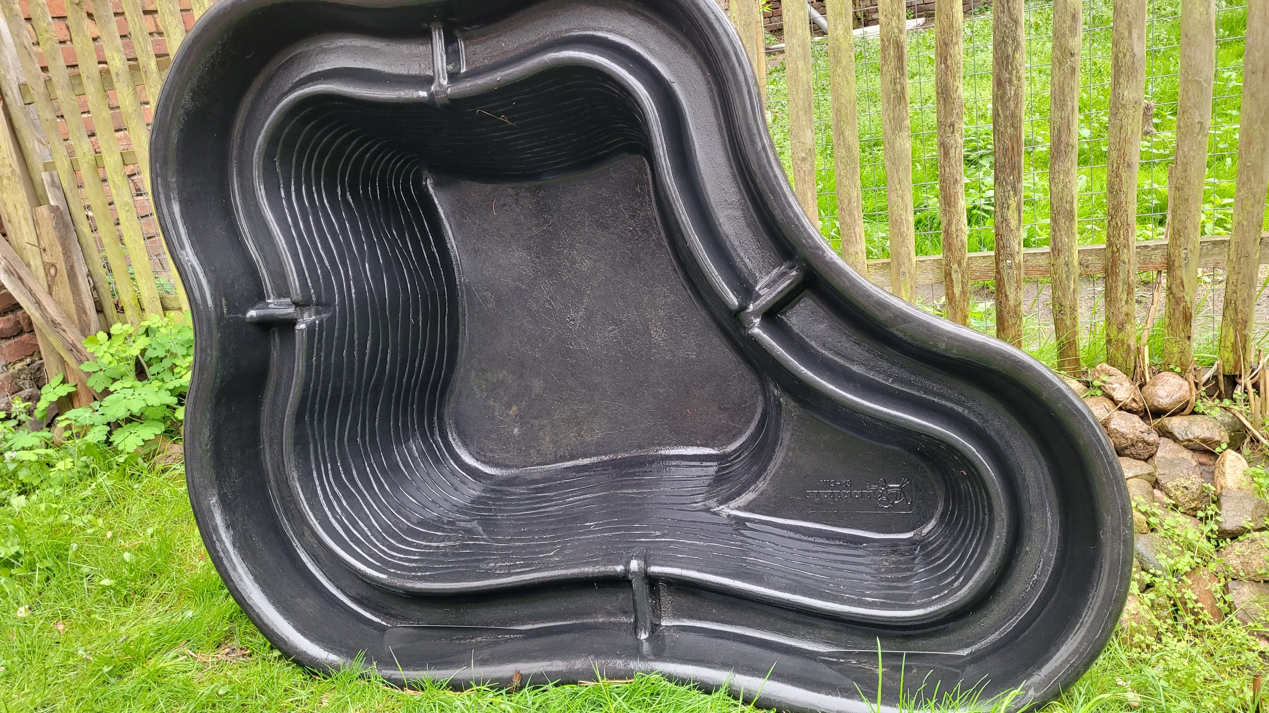 der Teich ist eingebaut gewesen, von innen gereinigt. Alles ist dicht