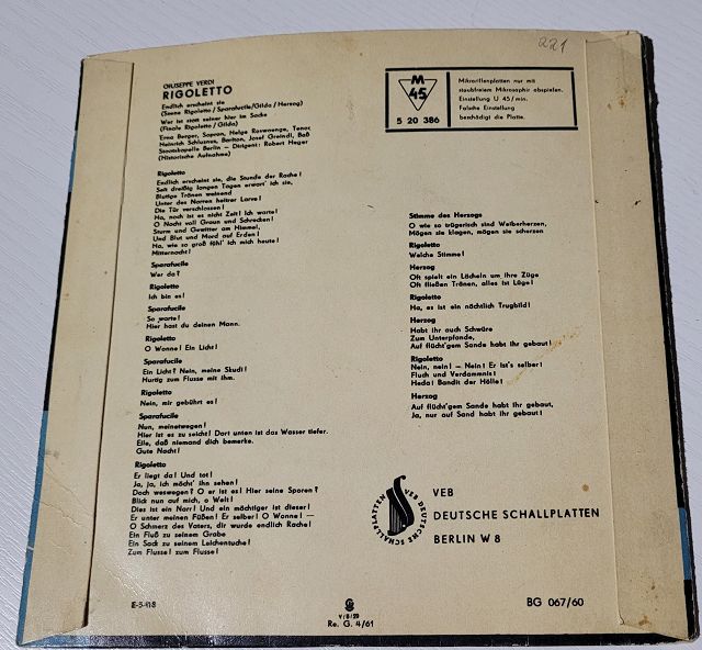 Verdi*, Erna Berger, Helge Roswaenge, Heinrich Schlusnus, Josef Greindl – Rigoletto