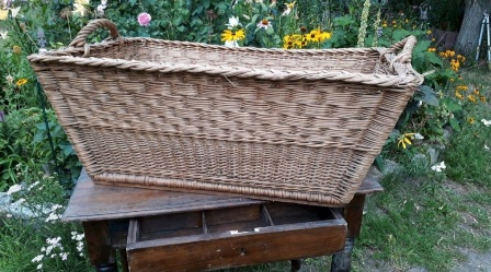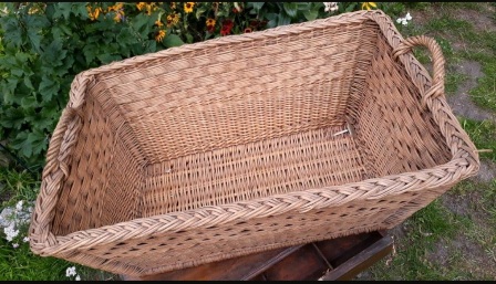 Hier biete ich einen wunderbaren großer uralter Weidenkorb Wäschekorb eckig aus Weide aus Uromas Zeiten an. Er hat eine eckige Form mit Henkeln zum Tragen.