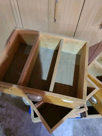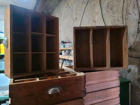Ich biete diese Holzkästen mit den Massen34 ×41×13 und original GriffeIch kann euch zeigen, einfach nur so als Tip was man damit machen kann. Ein Teeregal ;-)