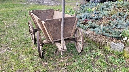 Wir haben ihn jahrelang benutzt, um z. B. Sachen ihm Garten zu transportieren. Er ist also einsatzfähig. Nun steht dieses Schmuckstück zum Verkauf.Traumhaftes altes Holz.Zum Transport kann die Deichsel abmontiert werden.